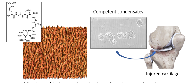 Las MSCs son células multipotentes que se diferencian, entre otros, en condrocitos. La formación de cartílago empieza con la condensación de las células mesenquimales que migran unas hacia las otras para formar agregados celulares tridimensionales. En este trabajo, la condensación mesenquimal se mejoró ajustando el nivel de adherencia entre MSCs y el sustrato a la nanoescala. Esto promueve la migración direccional de células, contribuye a la estabilidad mecánica de los agregados celulares y mejora las interacciones célula- célula, conduciendo a una mejor formación del cartílago in vitro. Los investigadores utilizaron MSCs derivadas de tejido adiposo humano, una fuente fácilmente accesible para potenciales aplicaciones clínicas.