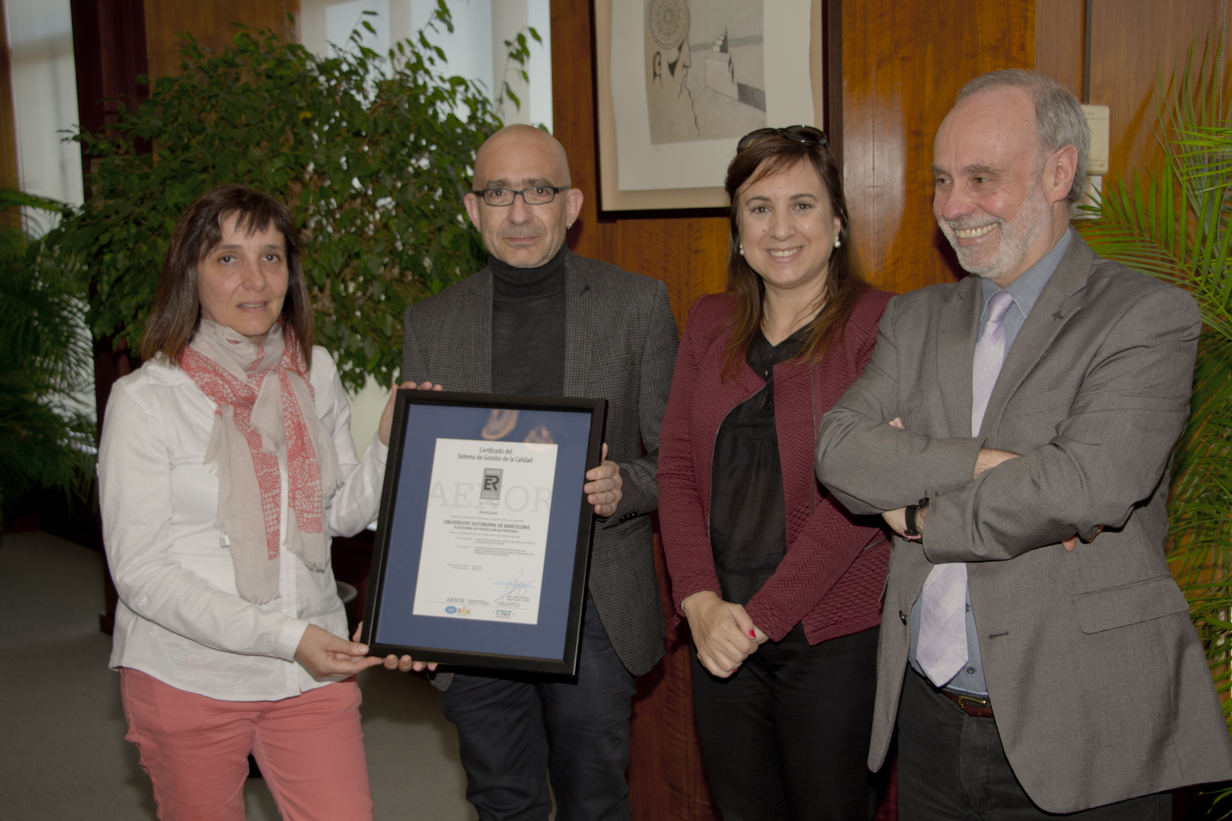 La Asociación Española de Normalización y Certificación AENOR ha entregado la certificación del cumplimiento de la norma UNE EN ISO 9001: 2008 al servicio de la UAB.