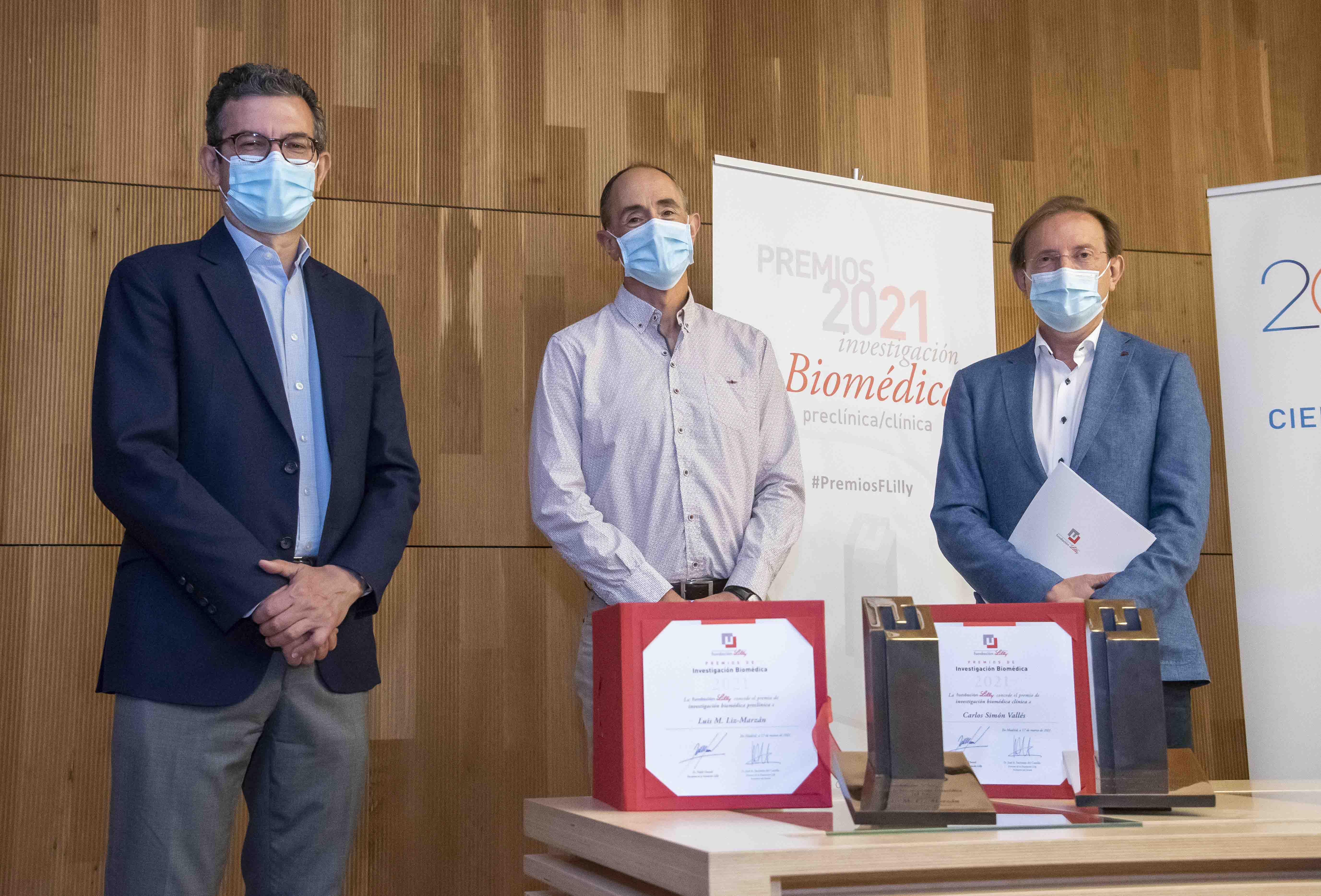 Luis Liz Marzán, jefe de grupo del CIBER-BBN, director científico del Centro de Investigación Cooperativa en Biomateriales – CIC biomaGUNE y profesor Ikerbasque, recibió ayer el Premio Fundación Lilly de Investigación Biomédica 2021 en la categoría de investigación preclínica. Con él, el profesor Carlos Simón Vallés, coordinador del Grupo de Investigación en Medicina Reproductiva de INCLIVA, catedrático de Obstetricia y Ginecología de la Universidad de Valencia y fundador de Igenomix, recibió el premio en la categoría de investigación clínica. Estos galardones, que reconocen la trayectoria científica de investigaciones sobresalientes que contribuyen al desarrollo de la biomedicina, se entregaron en un acto presidido por el ministro de Ciencia e Innovación, Pedro Duque.
