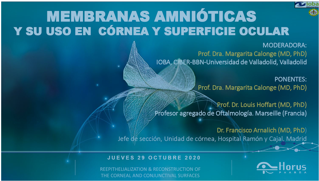 En el webinar participaron también el Dr. Francisco Arnalich Montiel y el Profesor Louis Hoffart, expertos también en este campo. El seminario web se centró en la descripción de las aplicaciones de la membrana amniótica, en su forma fisiológica y comercial, en la córnea y en el resto de la superficie ocular.