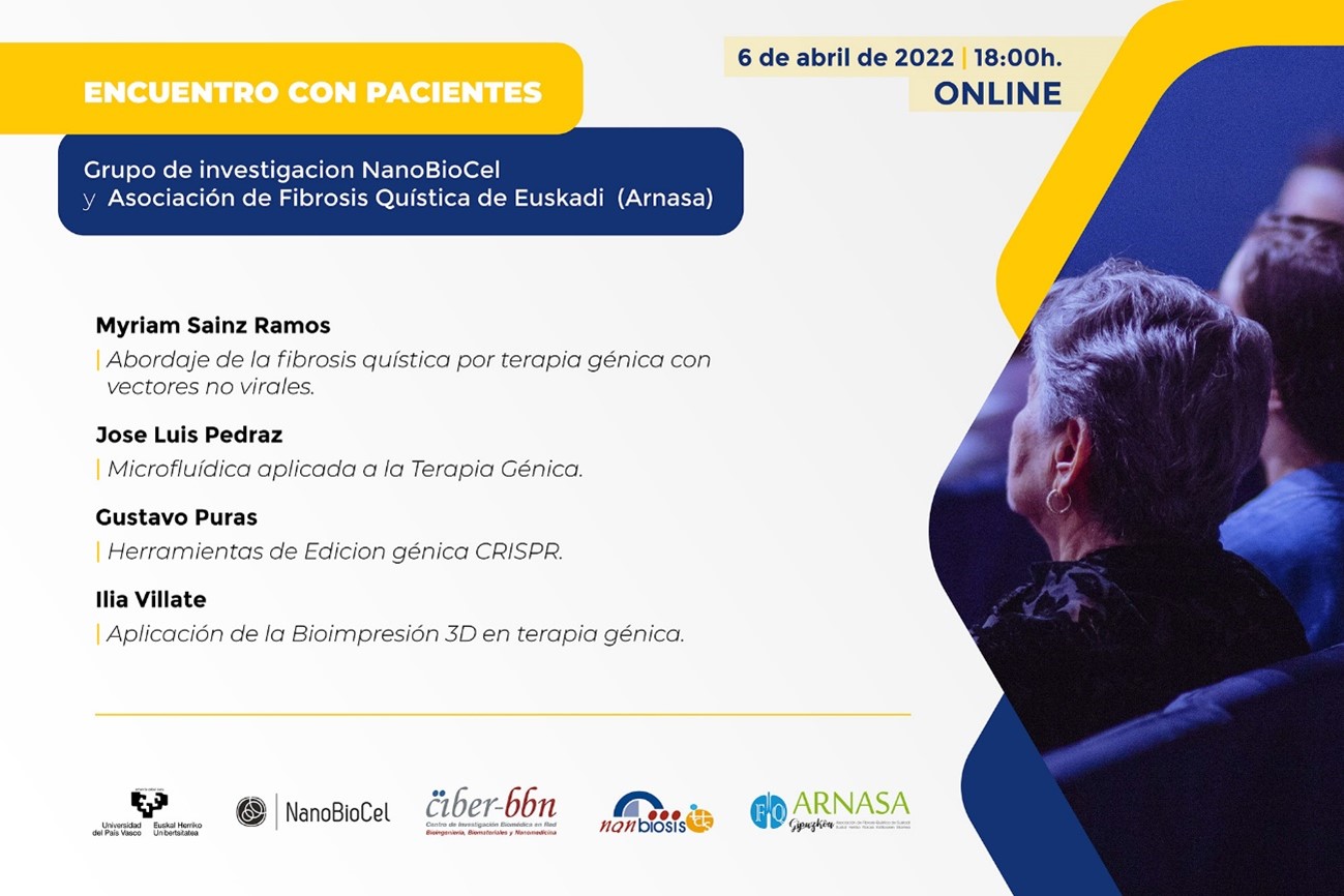 El pasado 6 de abril se celebró el primer encuentro, por un lado, con personas con Fibrosis Quística y la Asociación de Fibrosis Quística de Euskadi (Arnasa) y, por otro, con el grupo de investigación NanoBioCel del CIBER-BBN y la Universidad del País Vasco, que forma parte también de la ICTS Nanbiosis a través de la Unidad de Formulación de Fármacos U10.